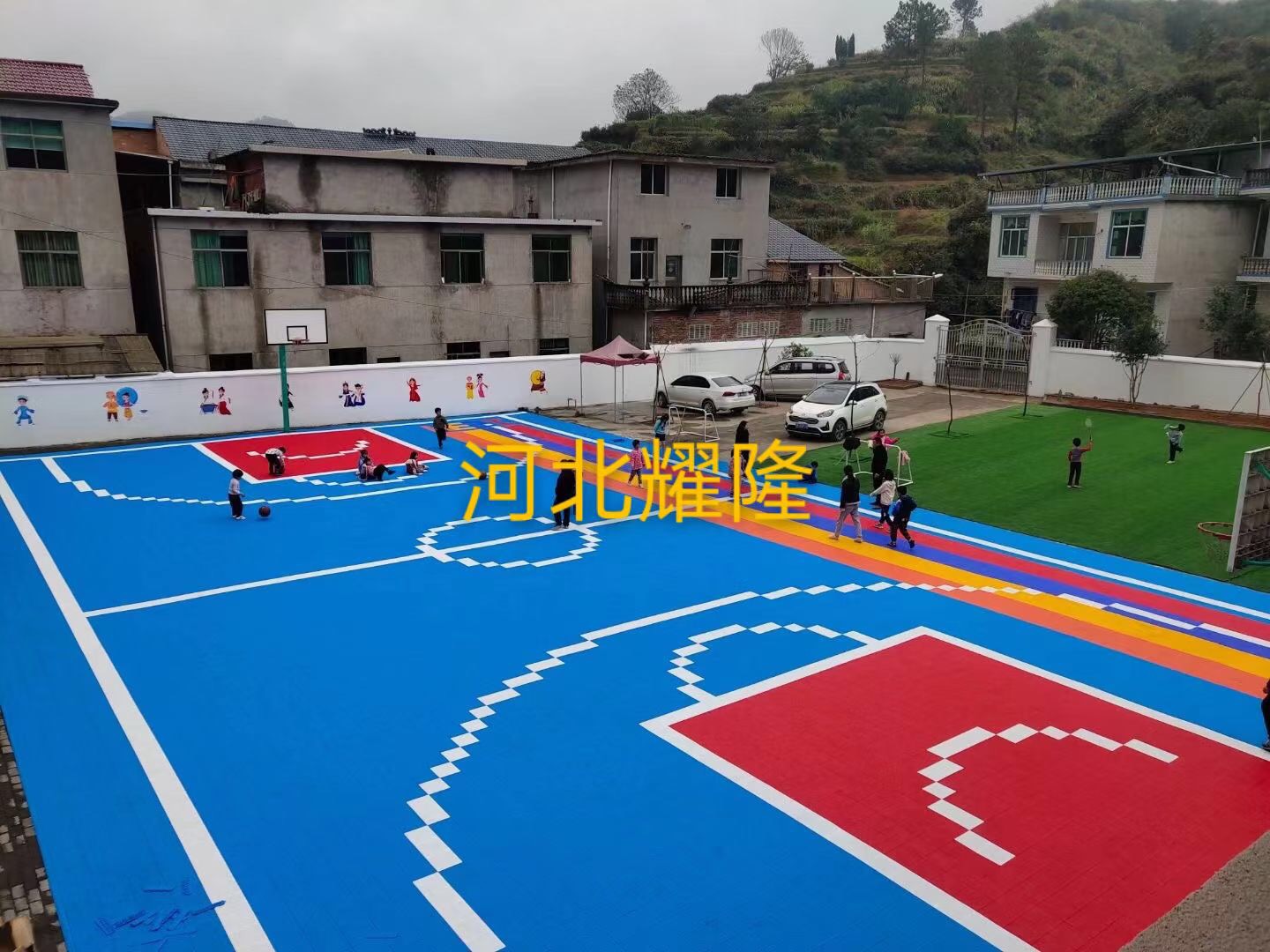 江西上饒橫峰縣懸浮拼裝地板籃球場520平